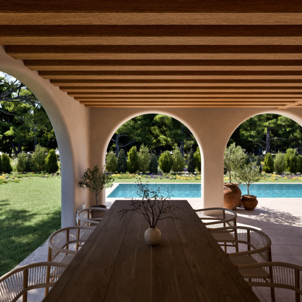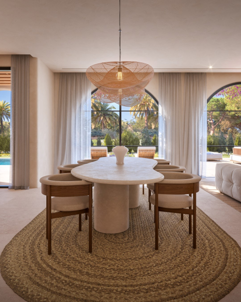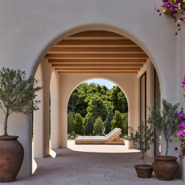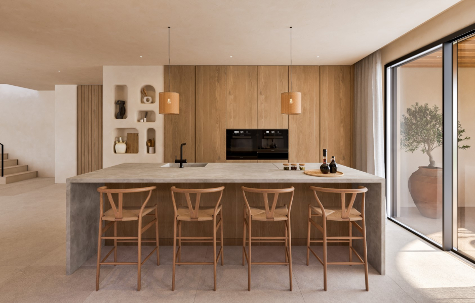 These unique homes combine contemporary architecture with Mediterranean warmth: spacious terraces, private pools, stone details, wooden pergolas, arches in the nayas and lush gardens create an atmosphere of refined serenity. Inside, the open and bright spaces naturally integrate with the outdoors, where the sea breeze and sunsets become part of everyday life.
